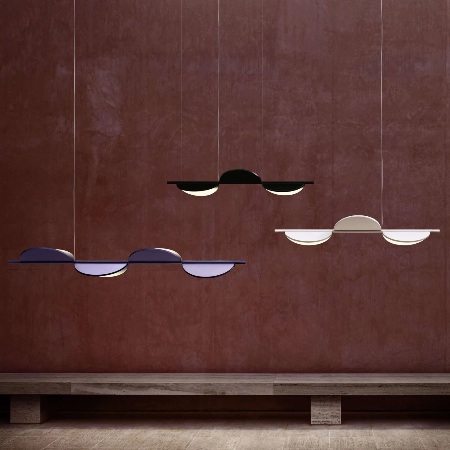 FLOS Almendra Linear LED hanging 4-bulb, lilac