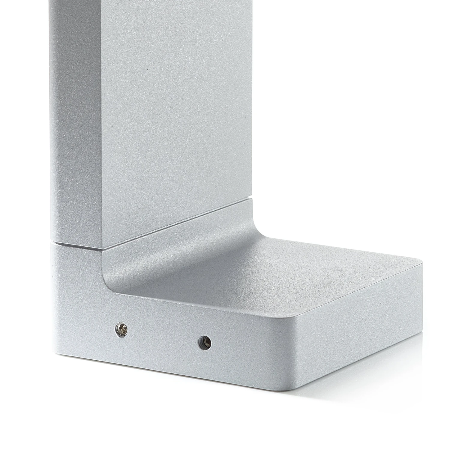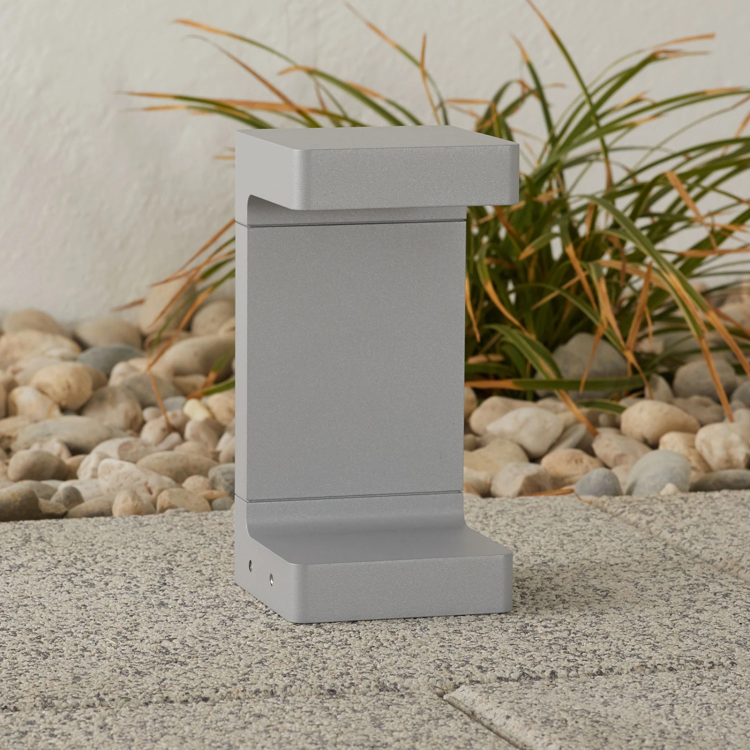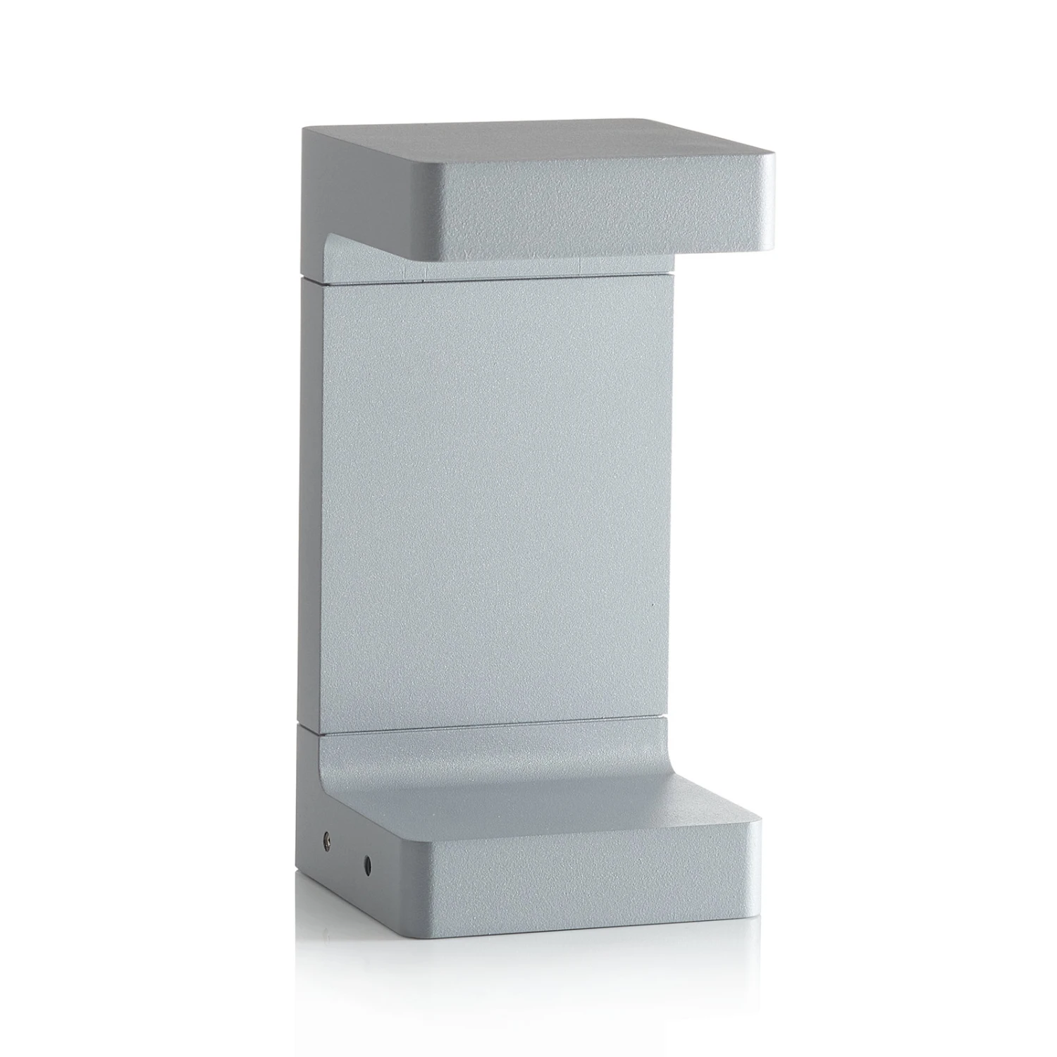 Angular design LED base lamp Casting C 100The body of LED base lamp Casting C 100 is made of extruded aluminum, and the base and diffuser are made of die-cast aluminum with low copper content. The surfaces were first sandblasted to ensure better adhesion of the paint. The double powder coating ensures very good weather resistance. While the first epoxy powder coat provides chemical and mechanical resistance, the second polyester powder finish ensures resistance to UV rays and weathering. The glass diffuser was microtextured to ensure homogeneous and uniform light distribution. It was glued to the heat sink, ensuring water resistance (IP65 protection). With warm white LEDs, the Casting C 100 LED base lamp provides very pleasant lighting – for example, mounted in the entrance area to the right and left of the door – and at the same time represents a modern accessory on the facade.