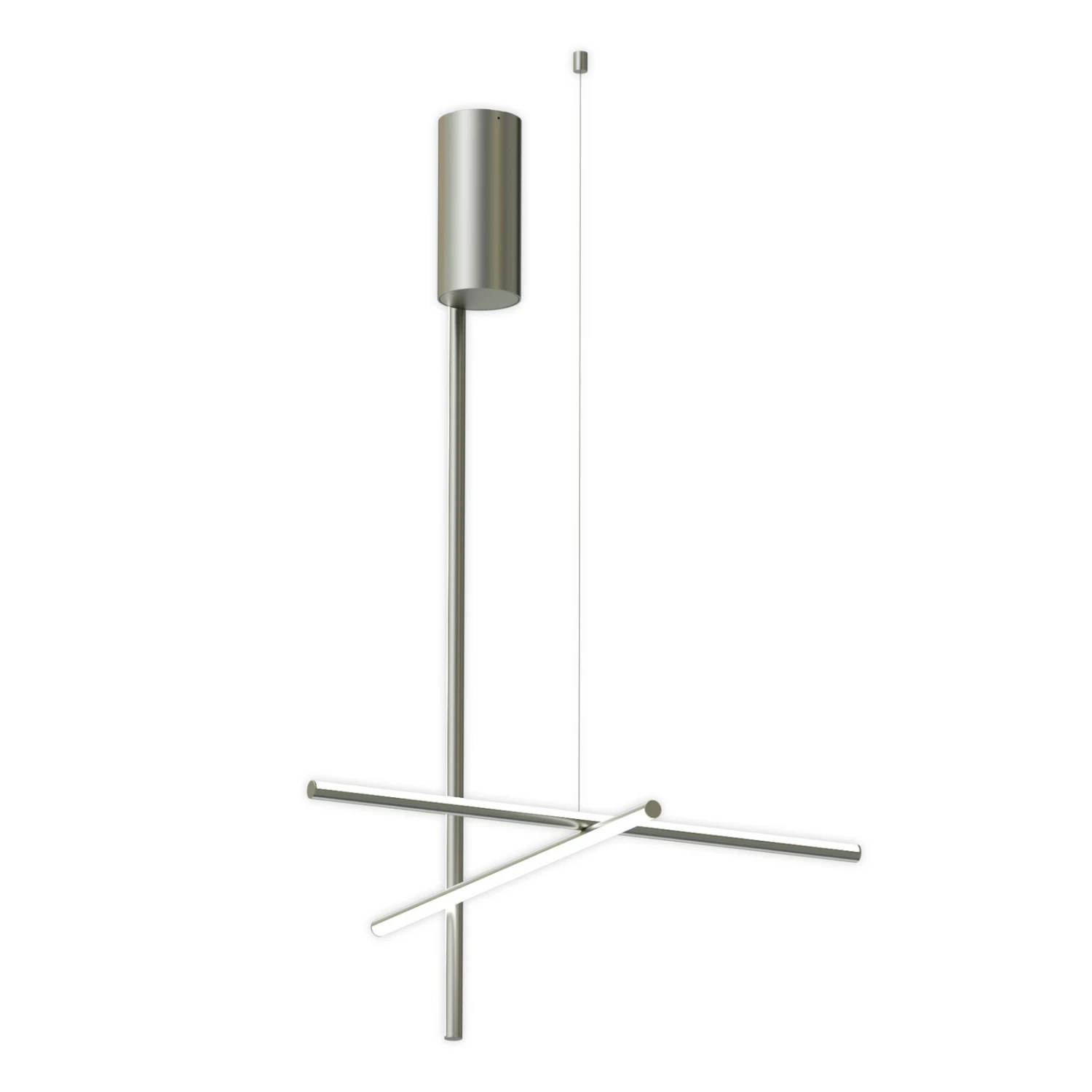 LED ceiling light Coordinates C1 almost looks like a work of art. The lighting system is composed of vertical and horizontal luminaires designed as narrow rods that diffusely emit the warm light to the surroundings. The elements are made of anodized aluminum. The diffuser is made of platinum silicone and contains the LED light source, which boasts high color rendering (CRI 95), which is particularly close to natural light. Each Coordinates configuration includes an individual canopy, whose integrated electronics allows the use of different dimming systems: push, 1-10 or DALI. If no external dimmer is available, the brightness can be adjusted during installation.