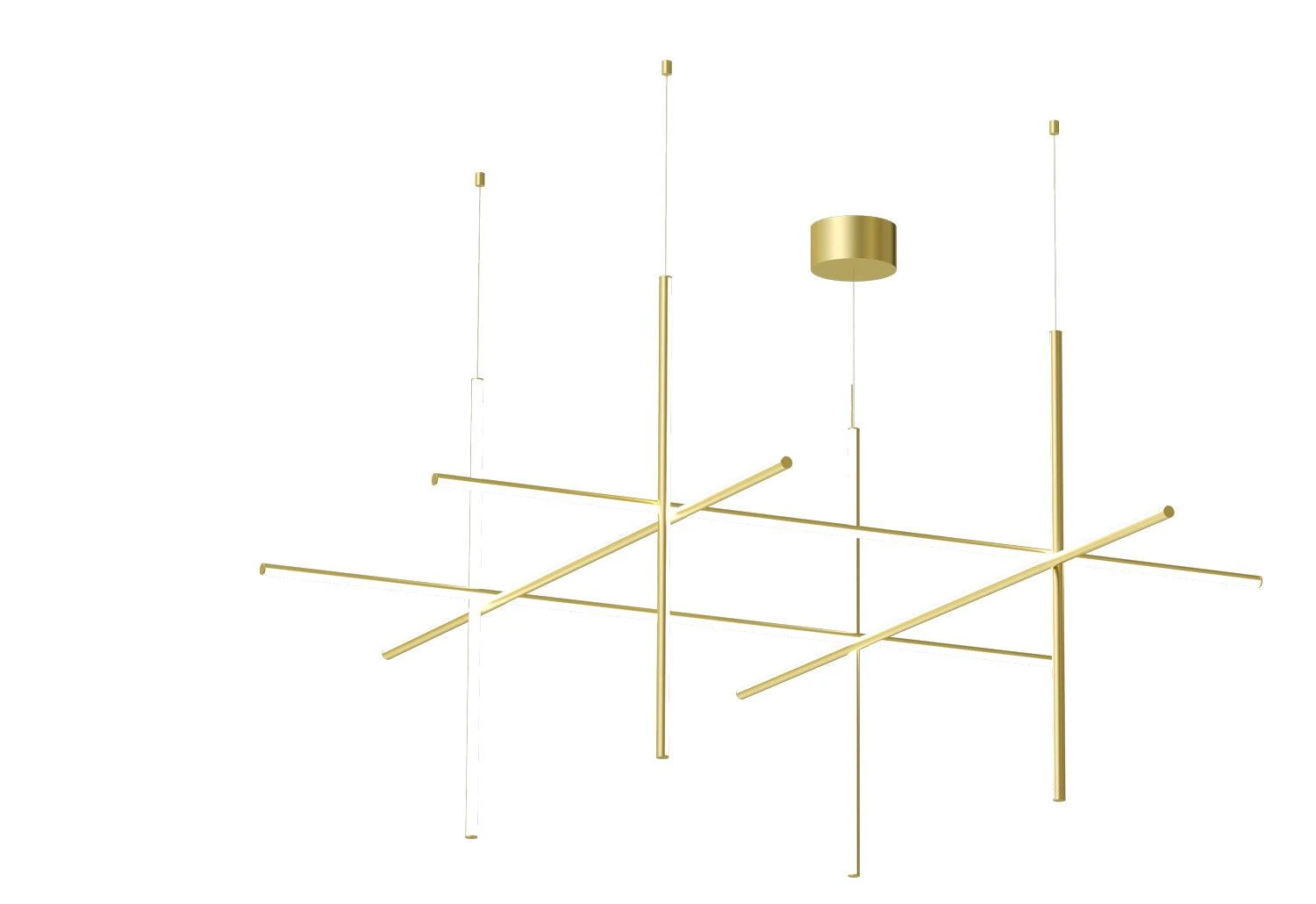 Part of the geometric Coordinates lighting range designed by Micheal Anastassiades in 2020. The Coordinates Suspension is composed of horizontal and vertical luminaires arranged in a complex composition. The Coordinates have a contemporary style with each element made of extruded anodized aluminium with a champagne finish.Â