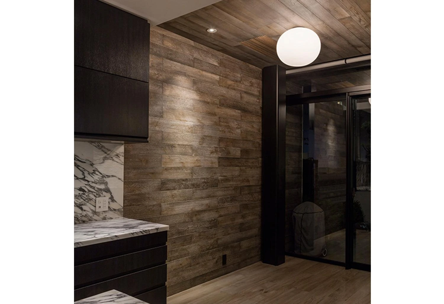 The spherical shade maximises the diffusion of light while minimising the light’s profile: the light appears as a flat glowing disc when illuminated and issues a soft and clean white light.