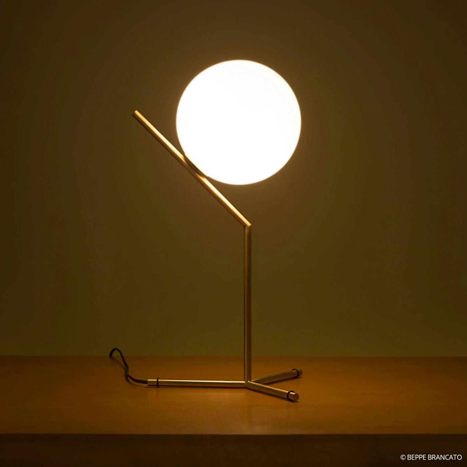 The table lamp IC – a glass ball balanced on a brass rod