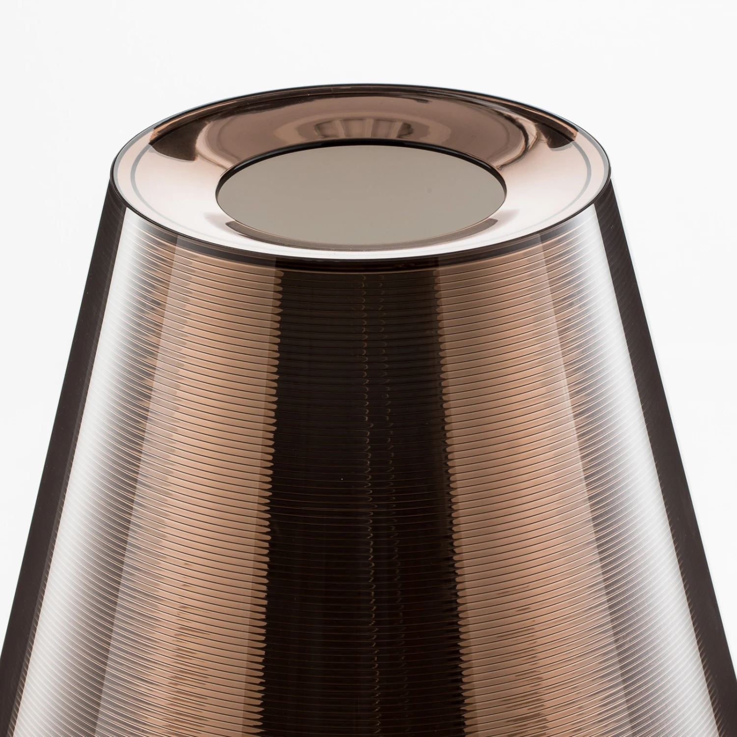 KTRIBE F2 is a floor lamp designed by Philippe Starck, which can inspire with an extremely modern appearance and sets special standards in terms of design. Classic is the outer shape of the shade and frame, whereby with polycarbonate and PMMA already very modern materials were chosen. Innovative, however, is the use of a second, internal shade. This consists of translucent, white polycarbonate and presents itself in a rounded form. In the case of two of the three available variants, however, this can only be seen to a limited extent, because the outer shade is coated with silver or bronze-colored aluminum and is only really translucent in the upper part. Thus, the light escapes mainly downward and contributes to an atmospheric mood – of course, not without enhancing the room as a whole with the modern presence of the designer floor lamp. In the other variant of the floor lamp with an outer shade transparent except for fine lines, which is no less attractive, but arguably even clearer and more reduced in appearance, you can see the inner shade completely, which illuminates the room more evenly.