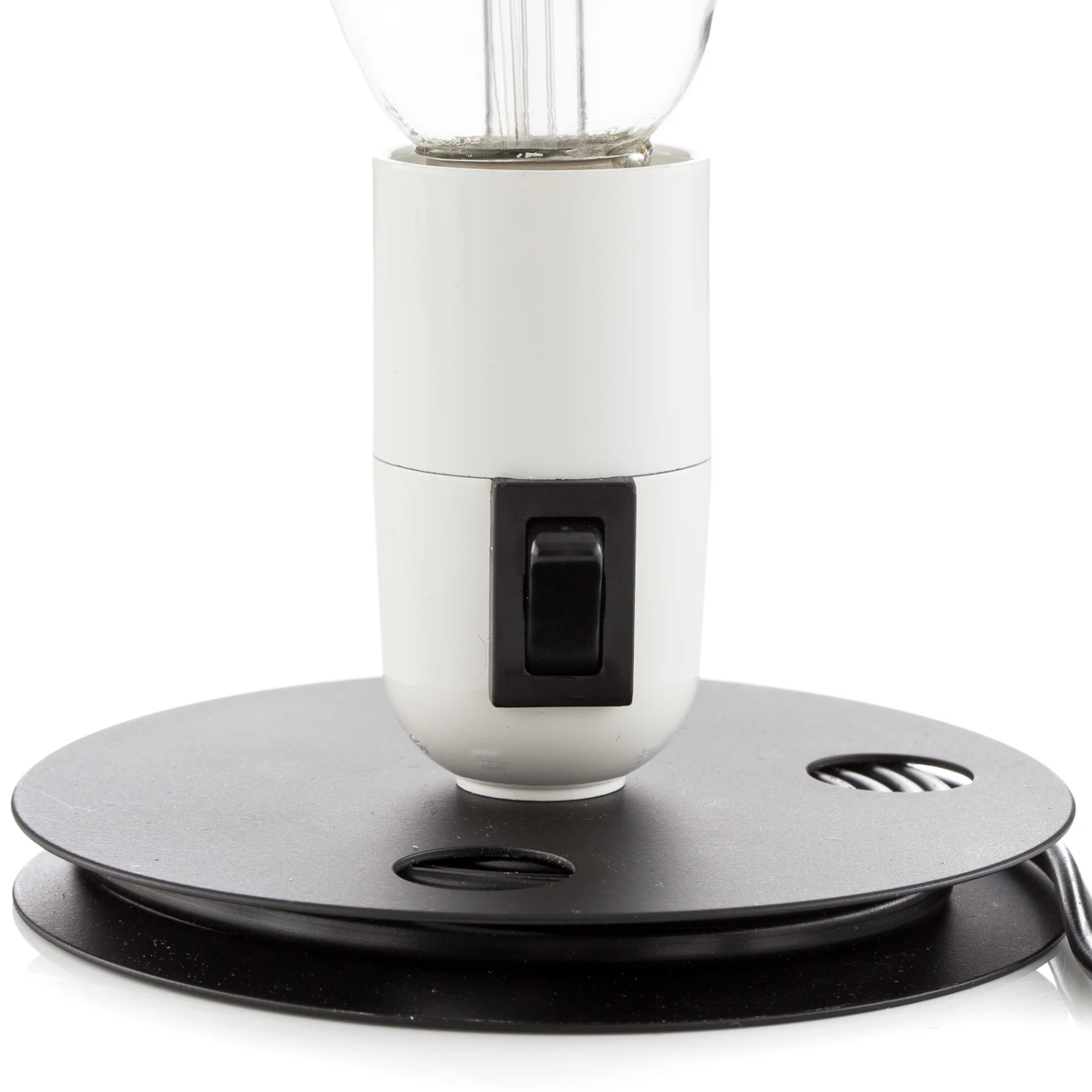 Designer Achille Castiglioni created Lampadina for the Flos showroom in Turin in 1972, and the design now goes again with trendy color. The table lamp consists of a clear LED bulb, which has a round satin circle that makes up about a third of the lamp. This part ensures that the reflection of light is limited in this area, making it possible to use it as a bedside lamp, for example. In addition, the filament look makes Lampadina look decorative. The base consists of a socket with a toggle switch and a film reel-like base that allows excess cable to be rolled up.