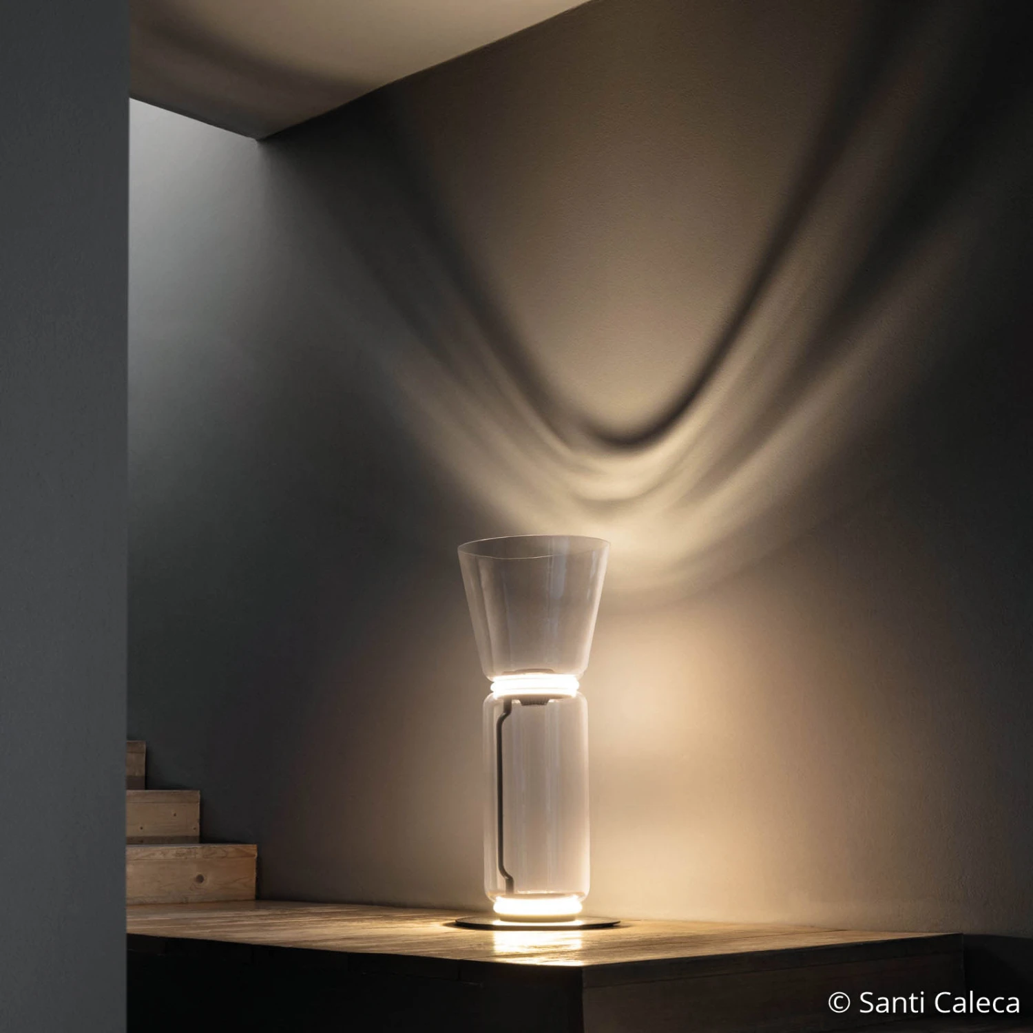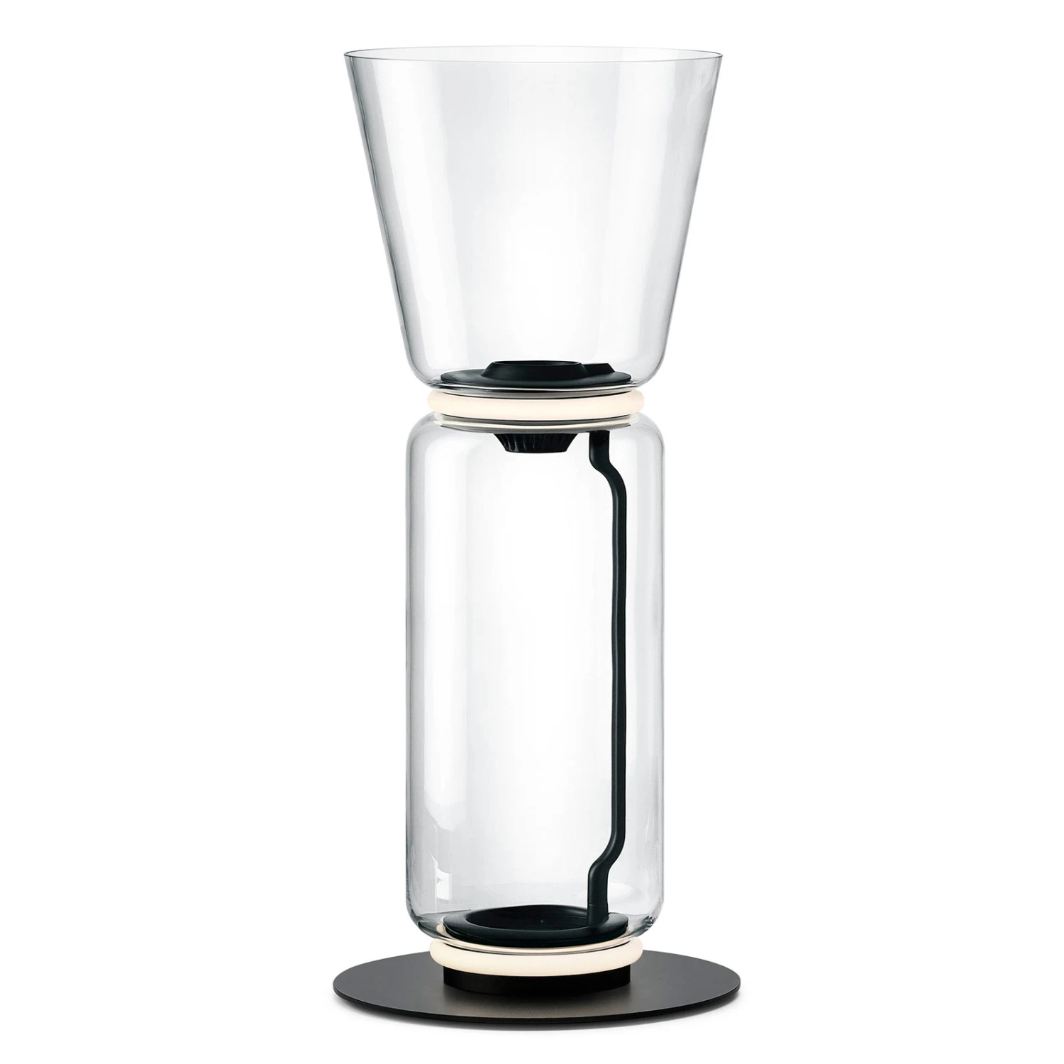 The individual glass elements of Noctambule are cylindrically shaped so that they look like a lantern. They are the base of each Noctambule lamp, which consists of different number of elements and a base, as well as partially completed by other glass elements in hemispherical or conical shape.