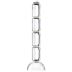 The Noctambule LED pendant lamp presents itself as equally inconspicuous during the day, as it is composed of individual, hand-blown glass elements that are both cylindrical and hemispherical. Between the transparent glasses, one light ring each is almost invisibly installed under an opal silicone diffuser. When the light source is activated, Noctambule enchants with an excellently calibrated light and creates a soothing and impressive atmosphere with the warm white light color, which sets great accents in the room.