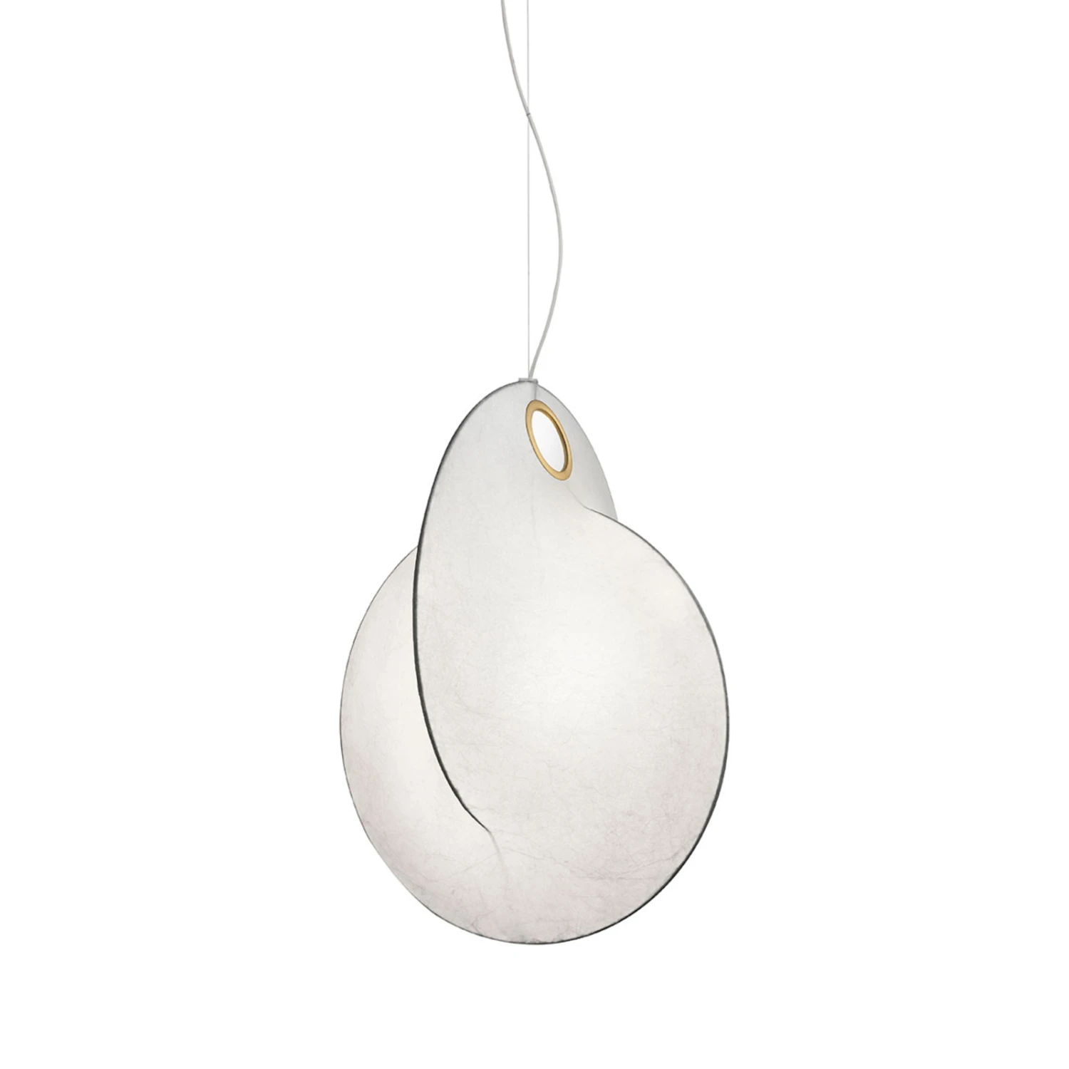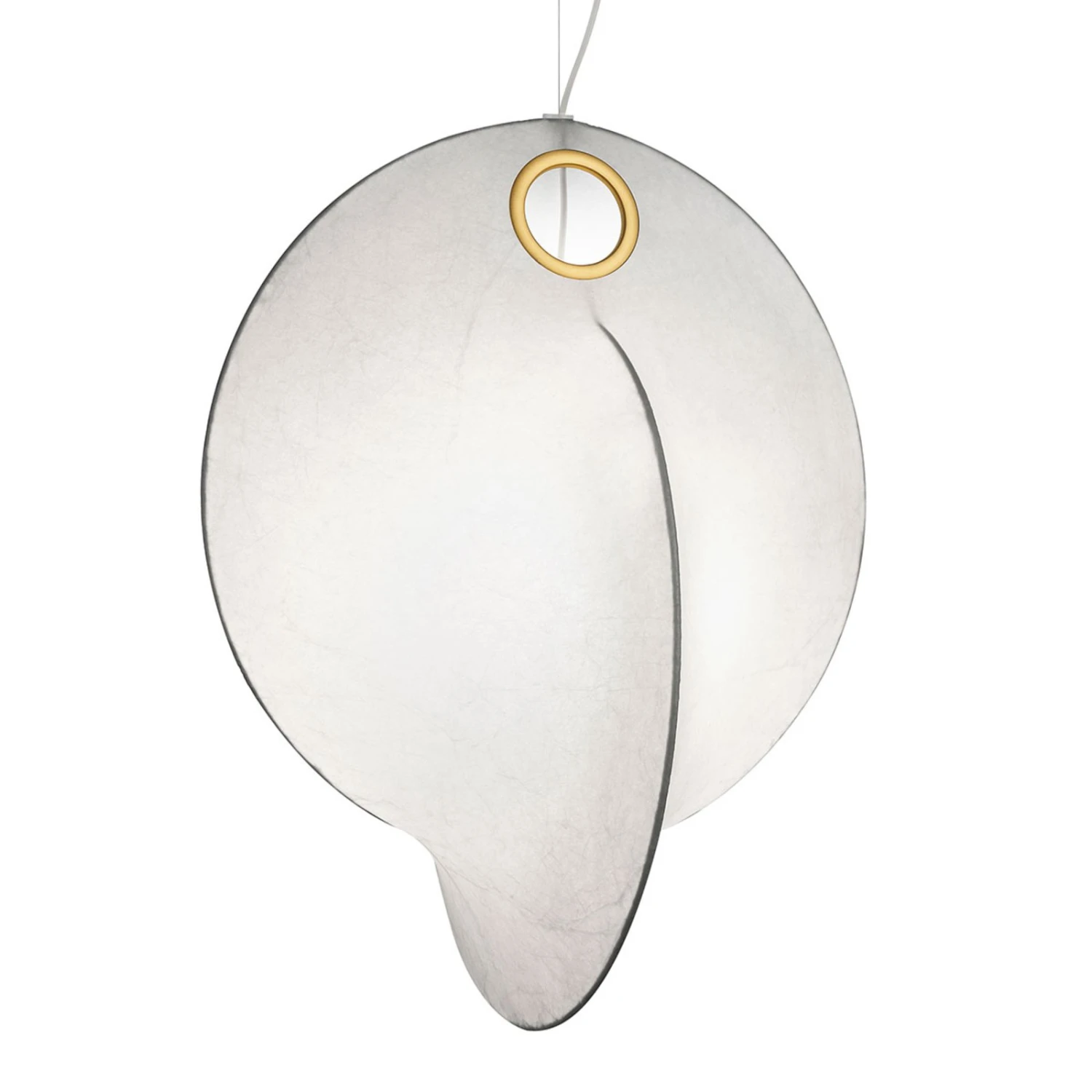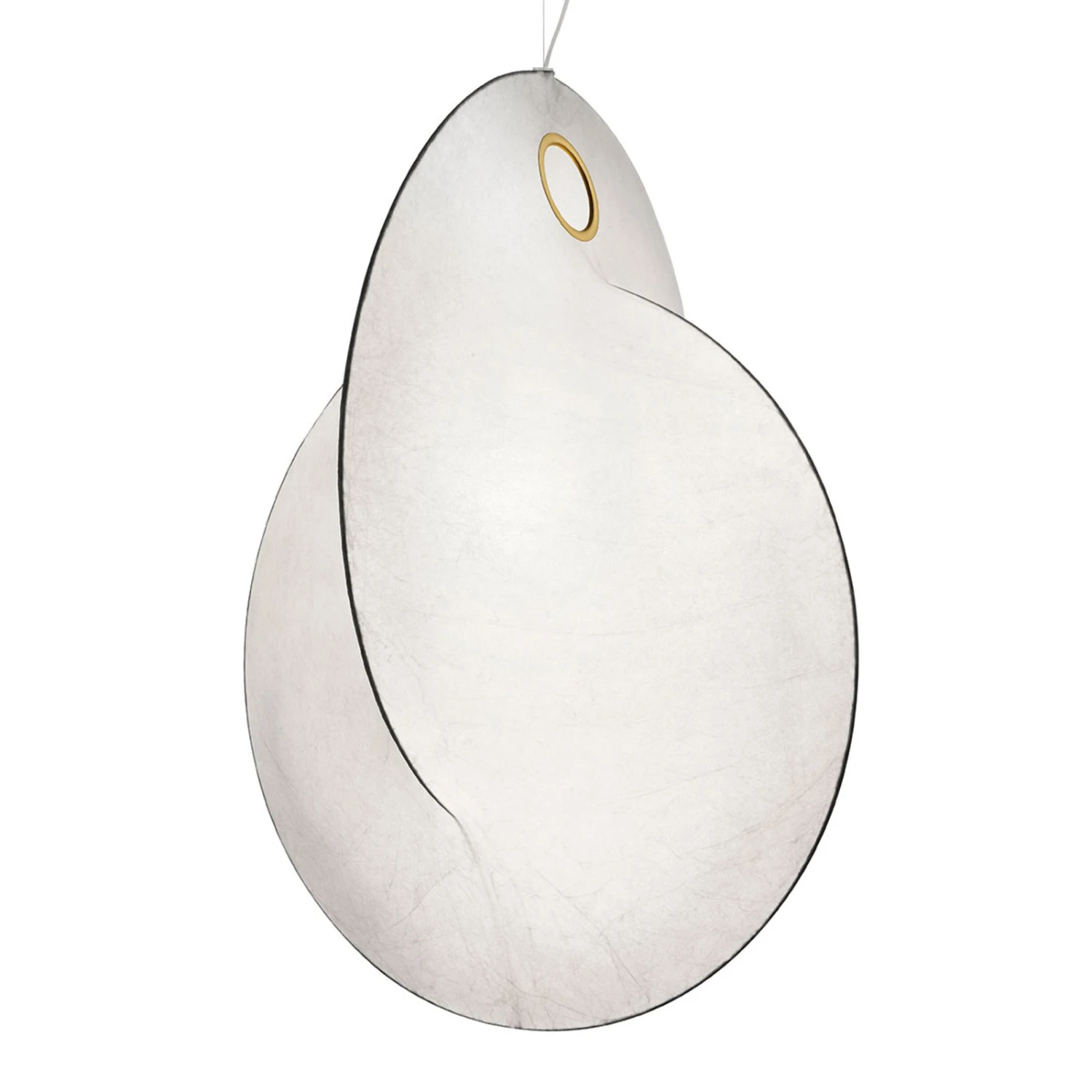 Overlap – a series of lamps designed for FLOS by London-based designer Michael Anastassiades. The basis here are two steel rings interlocking at right angles. In his search for a way to connect the ends of the two circles, he came across the material “Cocoon”.