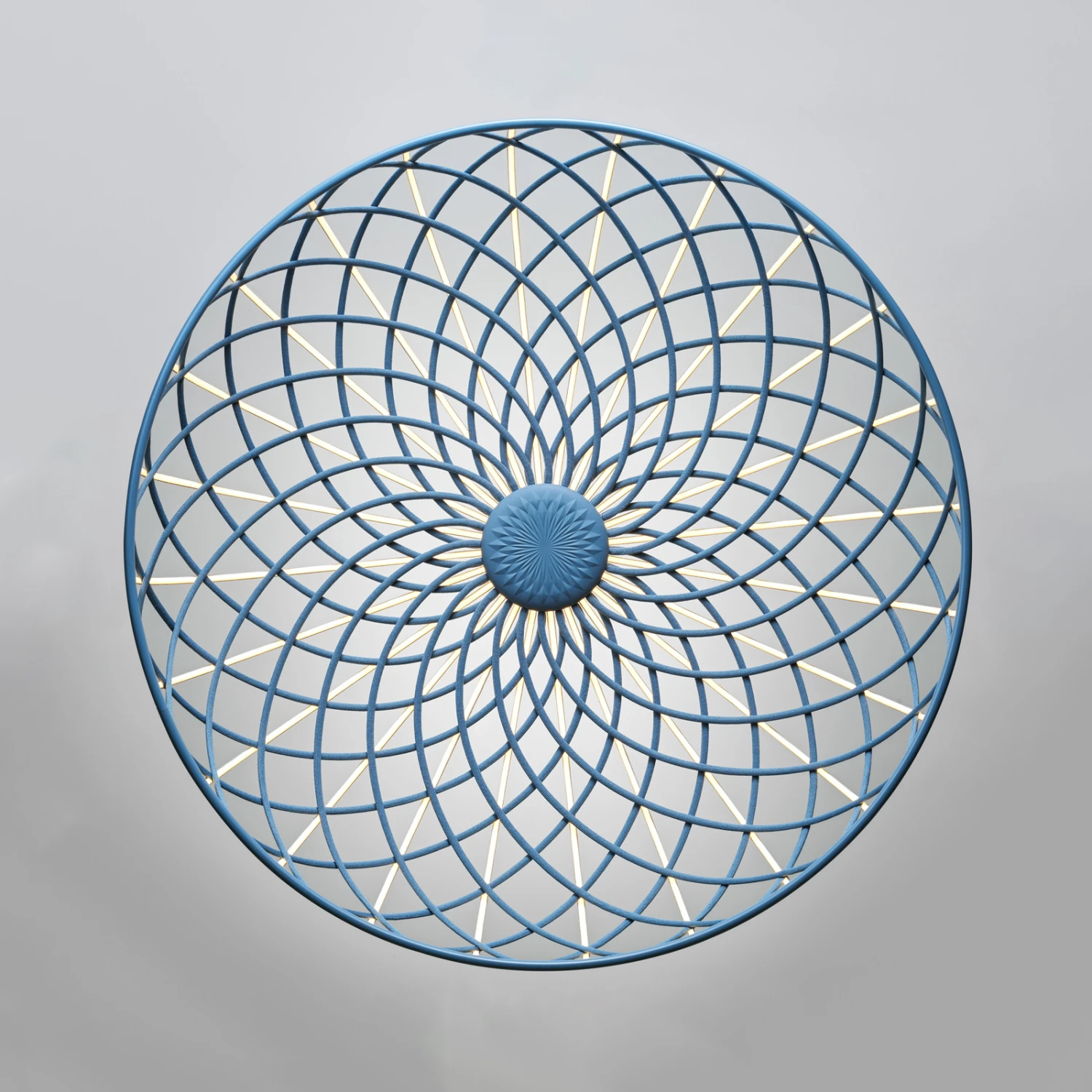 High-contrast highlight: Skynest LED pendant lamp with mesh structure, Ra90, warm whiteThe shade designed in the style of a basket gives the Skynest LED pendant lamp its special character. Starting from the centre in the upper part of the dome, the struts run crosswise downwards, where they end in a sheathed ring made of aluminium. The struts themselves are also covered with textile made of recycled polyester, with special struts running in between, each of which has an integrated LED light strip. The light is directed exclusively inwards, while the outside is also covered with polyester fabric. This creates a powerful contrast between dark and illuminated elements inside the dome.High-quality LEDs are integrated from the inside and emit warm white light. The built-in electronics are suitable for external dimming with various systems – 0-10V, 1-10V, DALI as well as PUSH-Dim.Matching the colour of the shade, the canopy is also painted accordingly. In addition, a special system in the suspension of the shade provides the necessary balance. Skynest was created for FLOS by Dutch designer Marcel Wanders and attracts attention even when switched off.Note: For dimming, the connection must be made via a 5-core cable. If connected with 3 wires, only switching on and off is possible.