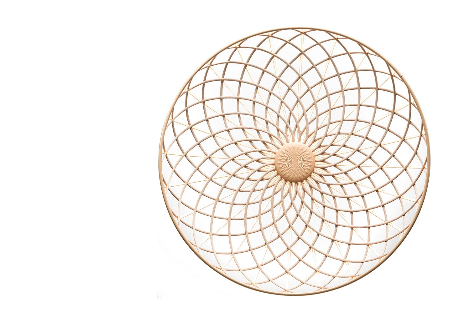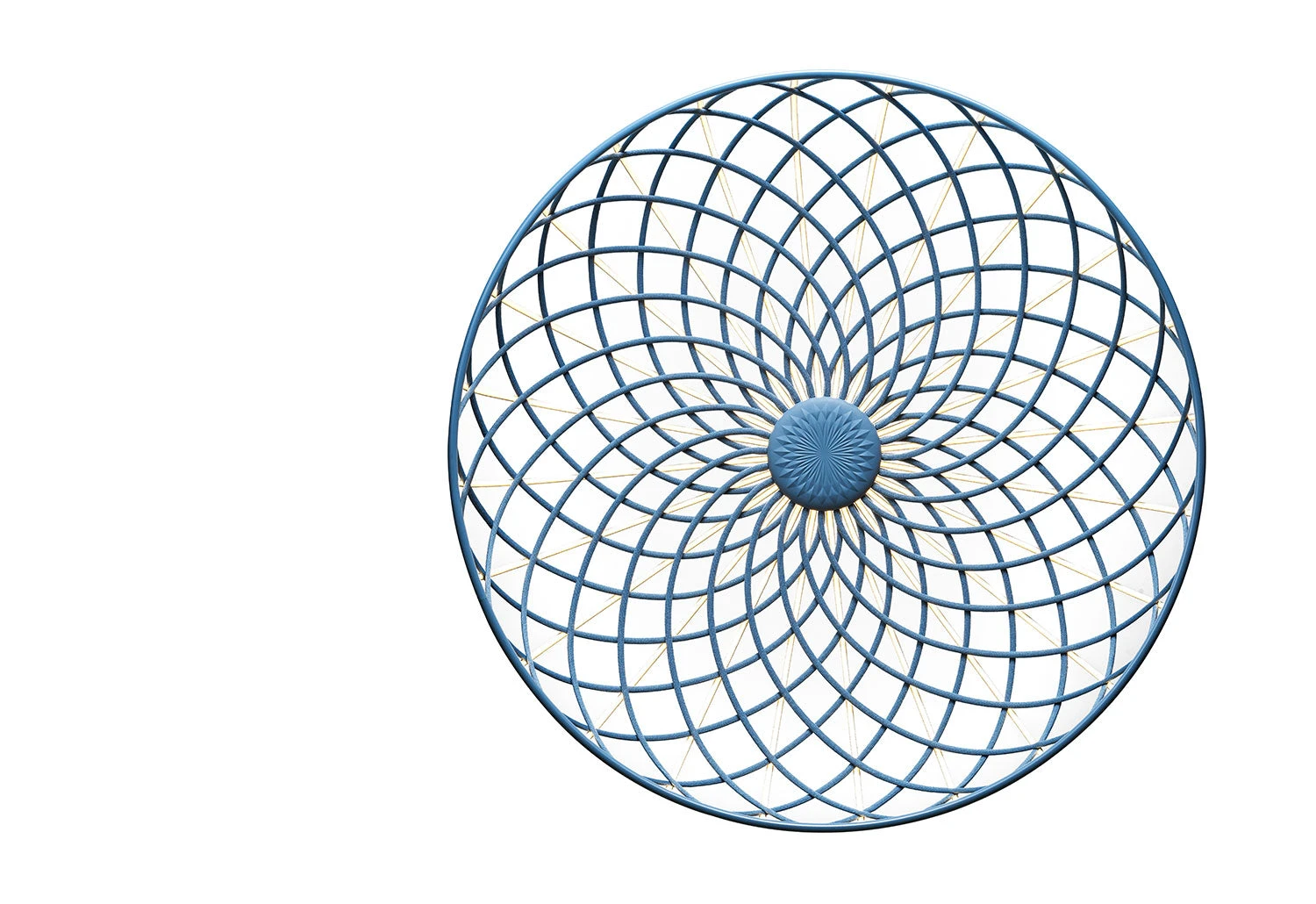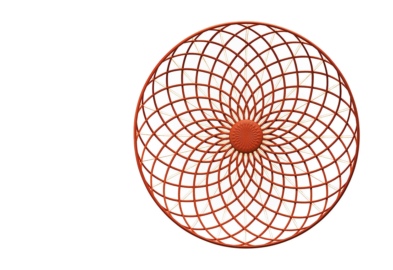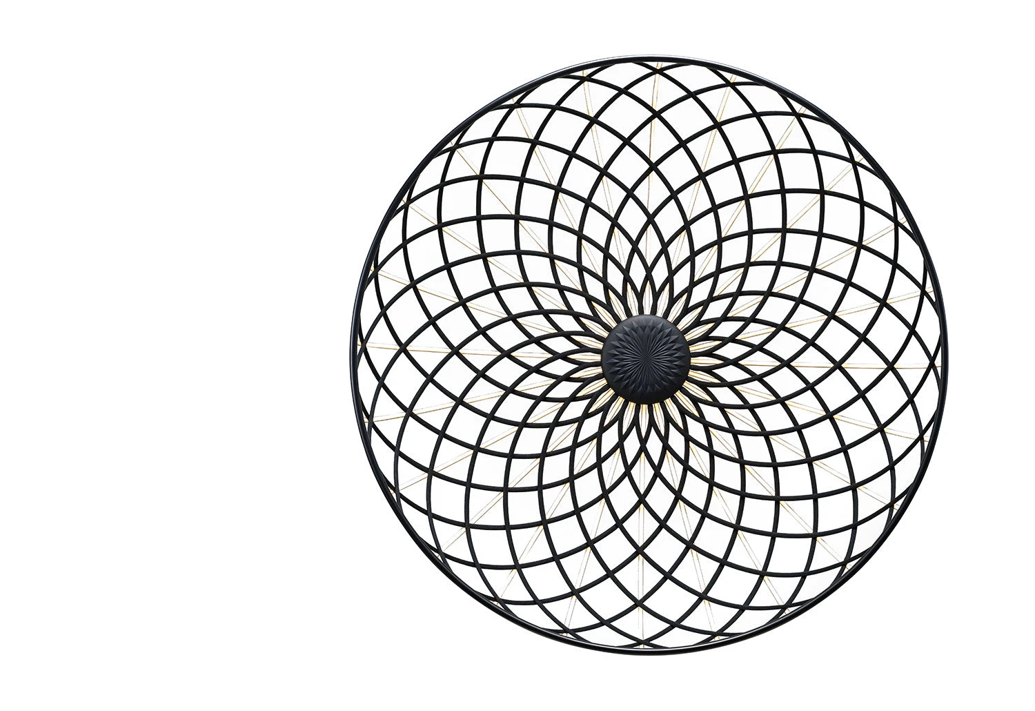 The dome is constructed from a network of tubular mesh made from recycled polyester, with each luminous element powered by a special micro-connector connected to the top. To ensure optimal light emission from the LED modules, these are always white when facing the inside of the dome.