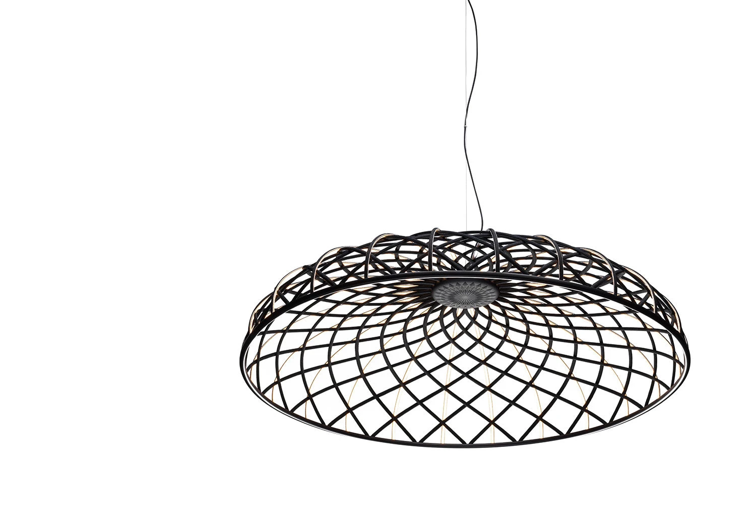 Marcel Wanders Skynest Suspension is a technical, innovative light with a dramatic silhouette. What makes this pendant truly unique is that the light neither comes from a bulb nor an LED board but instead from the fabric, which has LED strips incorporated.