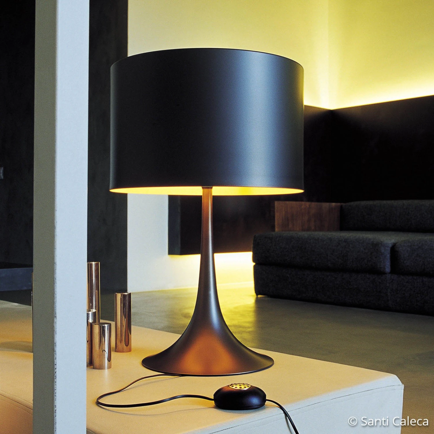 The designer table lamp SPUN LIGHT is made entirely of metal and aluminum and this means that the shade is not translucent, but only provides an indirect form of lighting. However, this is not at all to say that it is not a beautiful form of lighting that SPUN LIGHT has to offer. On the contrary, almost everyone knows that indirect light can contribute to a particularly atmospheric atmosphere, which can also be confirmed in the case of the SPUN LIGHT table lamp. Via an integrated dimmer, the brightness can be regulated to the desired level.
