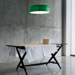 Superloon is a floor lamp from the designer company FLOS. The lamp has distinctly modern and almost purist features, which suit those interiors where it is important that less is more and the view of the essentials remains free. There is hardly any question of a classic shade here, it is more of a luminous disc, which is operated with luminous, warm white LEDs. This disc sits on a tripod frame and is embedded in a fork-shaped holder. Thanks to integrated joints, the light disk can be rotated and, in addition to direct lighting, indirect lighting conditions can also be realized.