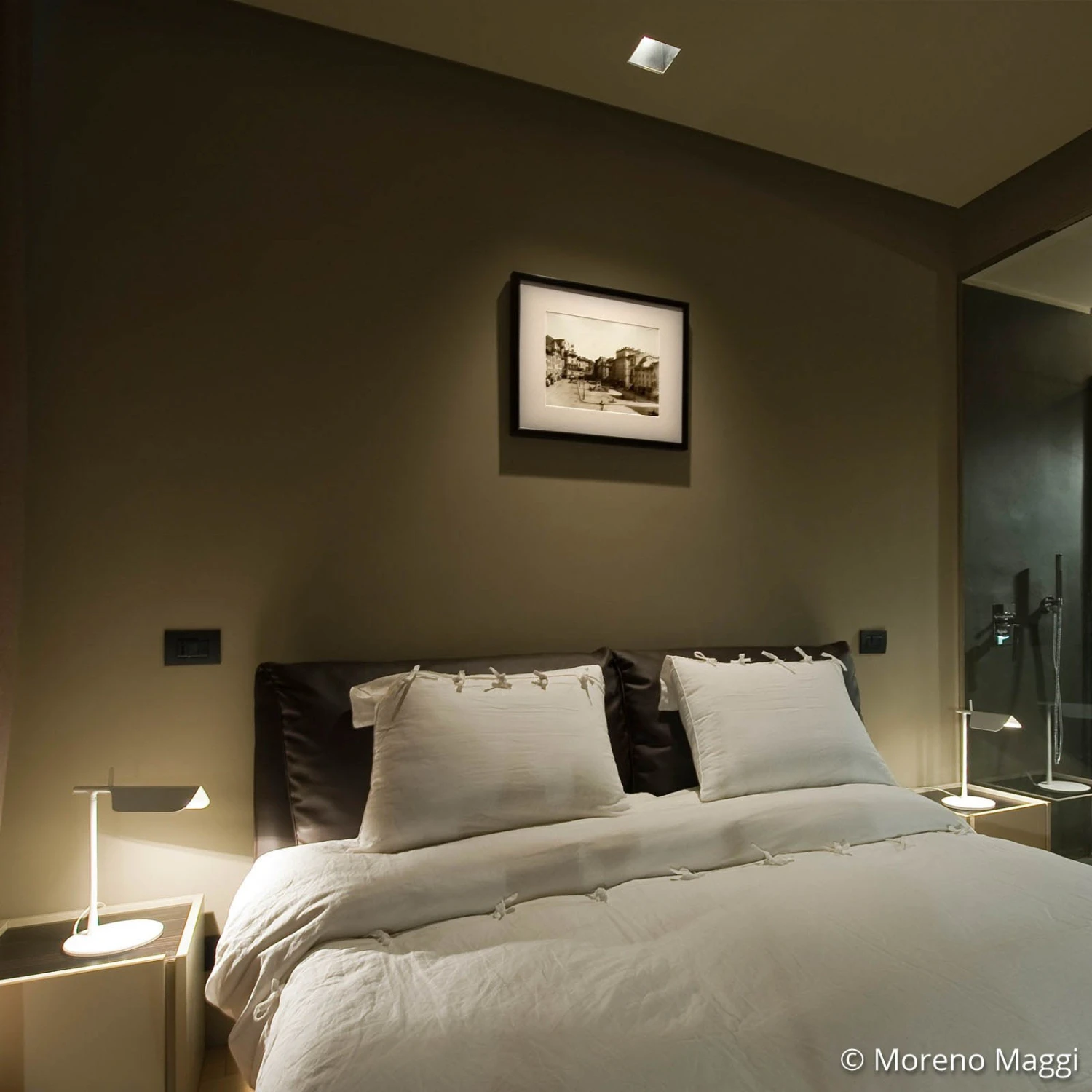 Light on the desk is always needed, whether at work or on the desk at home. Why resort only to functional lights and completely abandon design and aesthetics? With the LED table lamp Tab LED T from FLOS this is not necessary, because the lamp offers both: practical light for work and aesthetic appeal. The roof-shaped shade of Tab LED T can be rotated and adjusted as required by individual needs