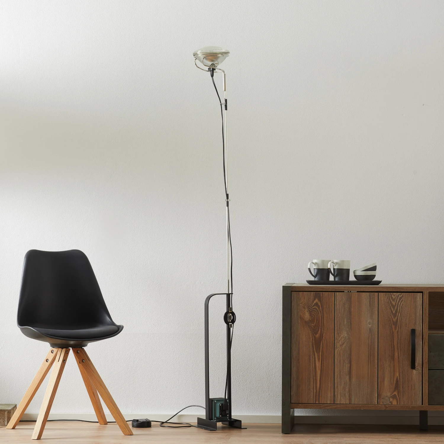 At first glance, TOIO does not have much in common with a classic floor lamp for living rooms and looks extraordinarily technical. This particular look makes the designer floor lamp interesting for modern, if not purist furnished apartments and houses. However, at a second glance, amenities can be discovered that correspond to the comfort of classic floor lamps: Firstly, it is the integrated dimmer, which allows you to adjust the brightness as desired, and secondly, TOIO can be adjusted in height from 158 to 195 cm, so that here too greater flexibility can be ensured. In any case, the floor lamp TOIO is a very interesting eye-catcher with a very high luminosity.